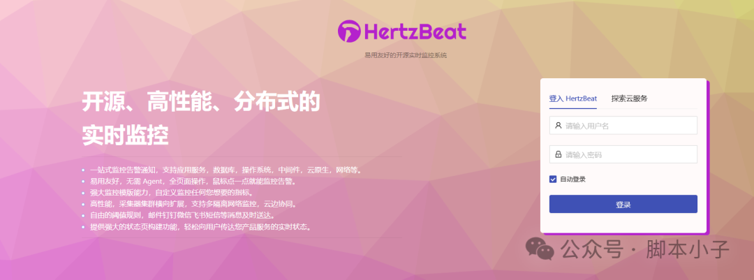 Apache-HertzBeat开源实时监控系统存在默认口令漏洞。