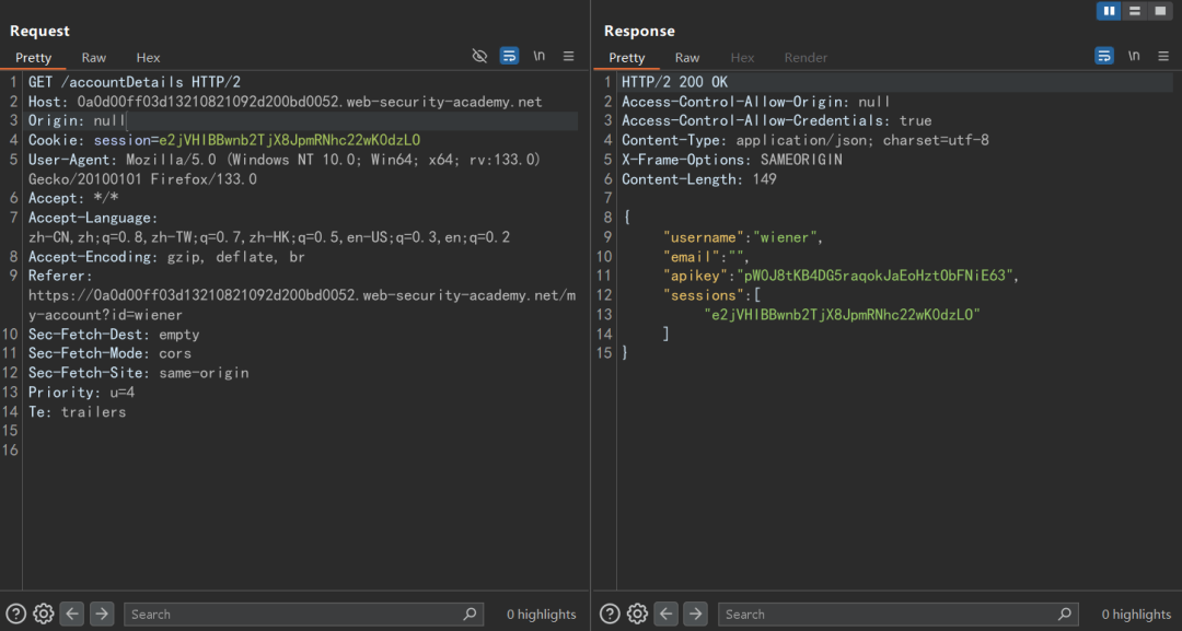 服务端为了让Origin为空时,也可以正常跨源访问,就会将null列入CORS白名单,如下图: