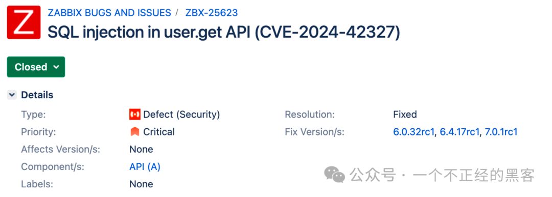 影响范围:Zabbix 6.0.0 至 6.0.31、Zabbix 6.4.0 至 6.4.16、Zabbix 7.0.0;