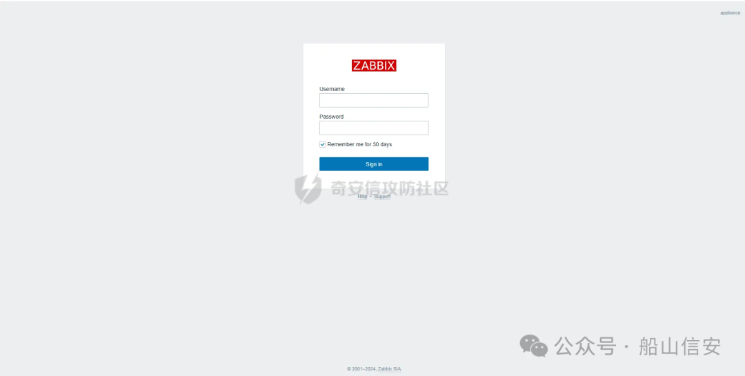 然后开机即可,访问机器ip的80端口即可看到 zabbix 登录页面,默认账号密码是root/zabbix