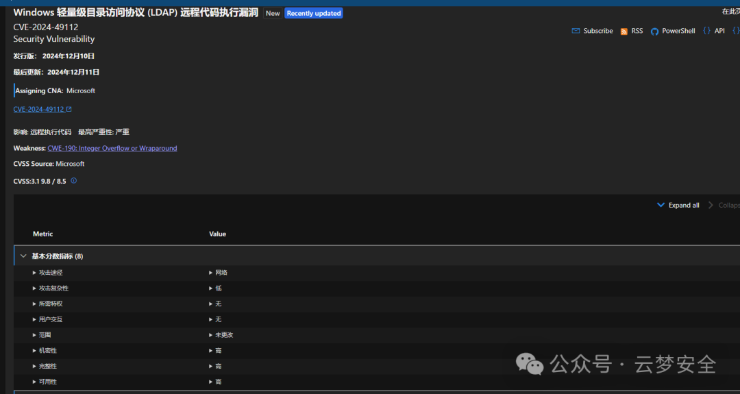 CVE-2024-49112 Windows 轻量级目录访问协议(LDAP)的远程代码执行漏洞
