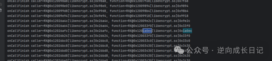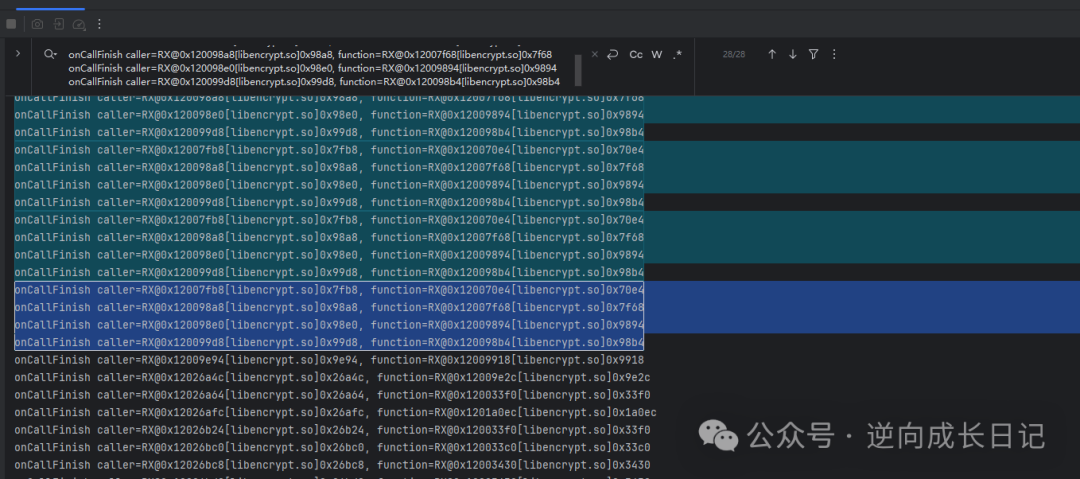 3、unidbg 补环境很基础,然后直接func-trace,用base64的地址进行定位,往上的函数调用有很明显的四个方法循环调用,然后挨个看下四个方法