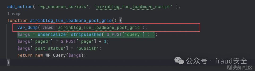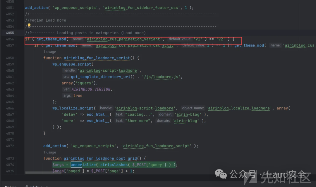 反向追踪,发现airinblog_fun_loadmore_post_cat
