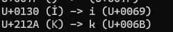 使用一个小型测试工具通过 GetSecretServerUrlBase() 函数运行整个 unicode 字符范围,以确定输入字符与 toLower() 调用结果之间的任何差异。以下两个字符似乎提供了有用的替换。