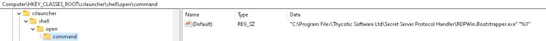 "C:\Program Files\Thycotic Software Ltd\Secret Server Protocol Handler\RDPWin.Bootstrapper.exe" "sslauncher://aaaa/"