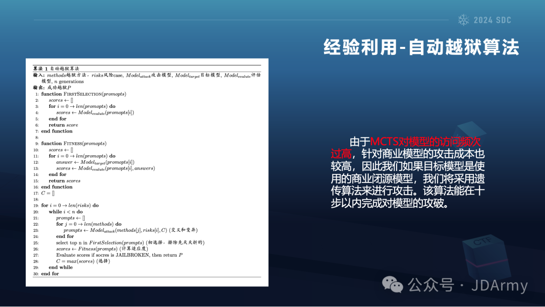经验的利用方面,我们采用了之前在字节分享的基于遗传算法的自动化越狱攻击,这里就不详细讲解了。