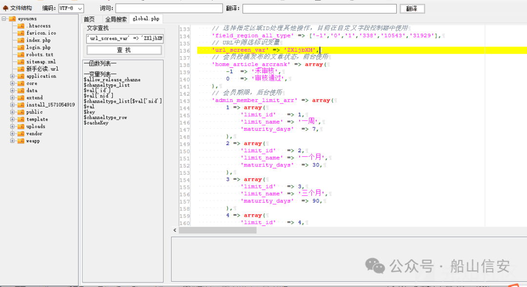 ‘url_screen_var’这个值=>’ZXLjbXM’,这里它cms也注释说明了这个参数代表了文章状态,在前台使用的。ZXljbXM