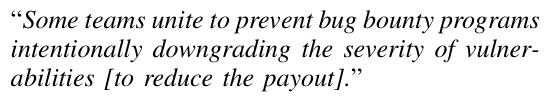 从某种程度来说,漏洞挖掘团队也可以算是一种工会形式,抱团赚取impact,以后可以换得更好的回报:
