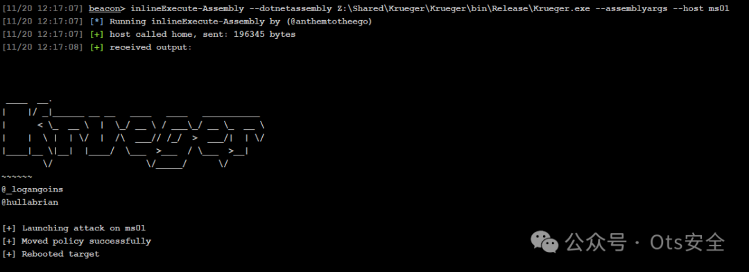 execute-assemblyKrueger 还可以使用和inlineExecute-Assembly(@anthemtotheego )等工具从内存中运行。此外,为了防止在从内存执行 Krueger 时需要从磁盘加载 WDAC 策略,Krueger 在编译时插入了 .NET 程序集内的嵌入式 WDAC 策略,该策略可以从内存中读取并在运行时写入目标。