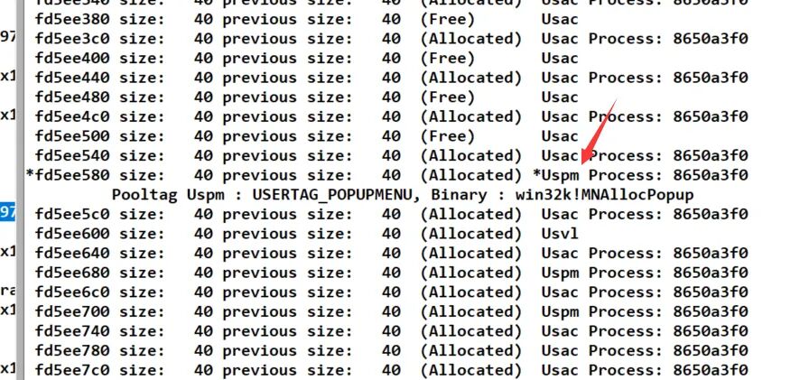 在xxxMNMouseMove函数中下断点,运行exp,当运行到发送0x1F0的消息时,此时可以看到#32768窗口对象的tagPOPUPMENU中偏移0xC的spwndNextPopup为0。