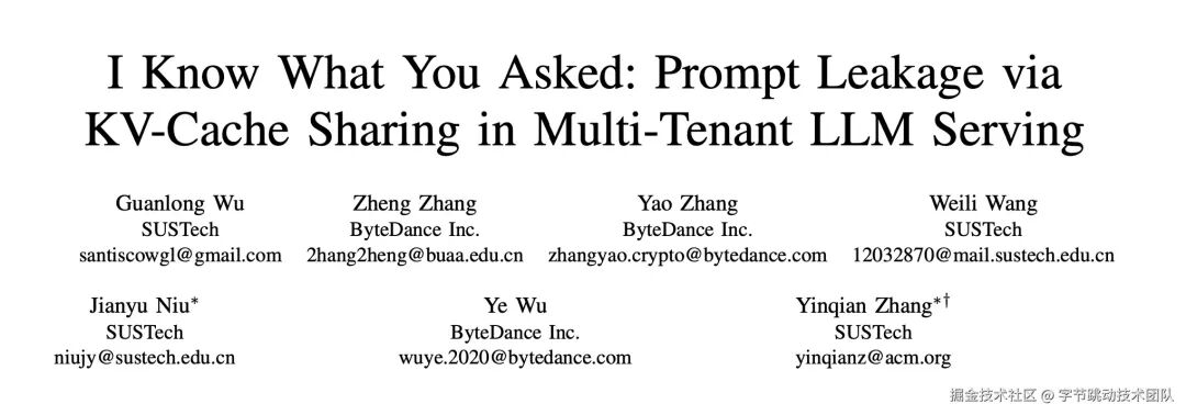 NDSS 2025|Prompt泄露风险:抖音集团安全研究团队揭露多租户KV缓存共享漏洞