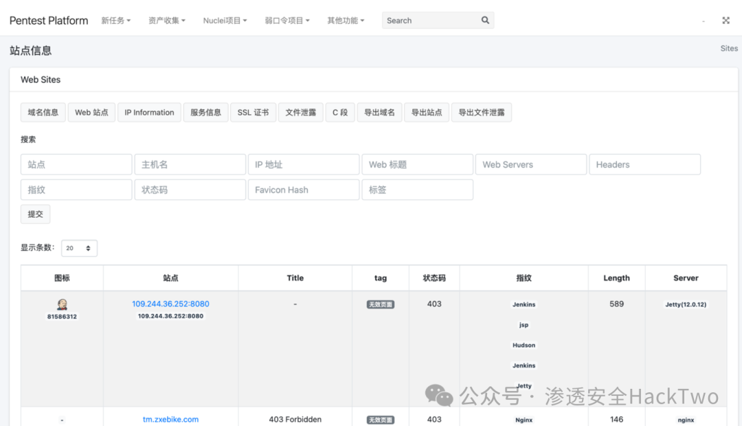 0x02 功能简介功能逻辑设计NucleiPlatform 扫描模块 —> 逻辑设计简单,随时添加目标资产,针对大量资产进行无脑扫描。—> 支持对资产进行项目分组。—> 至少两至三台机器去做 Nuclei 分布式扫描。—> 支持对节点状态,扫描队列的查询。AssetsDetectAPI 资产收集模块 —> 支持 celery 分布式任务调度。—> 支持对资产进行项目分组,主要功能流程域名收集(域名爆破和网络测绘)、端口扫描、站点查询、指纹识别、服务识别、证书信息、站点截图、目录扫描。Demo0x03更新说明支持 celery 分布式任务调度支持对资产进行项目分组支持漏洞批量探测0x04 使用介绍项目部署修改控制文件描述符限制#!/bin/bash# 系统echo ‘fs.file-max = 65535’ | sudo tee -a /etc/sysctl.confsudo sysctl -p# 用户 cat /etc/security/limits.confsudo tee -a /etc/security/limits.conf << EOF hard nofile 65535 soft nofile 65535root hard nofile 65535root soft nofile 65535 soft nproc 65535 hard nproc 65535root soft nproc 65535root hard nproc 65535 soft core unlimited hard core unlimitedroot soft core unlimitedroot hard core unlimitedEOF# Systemd # cd /etc/systemd/# grep -rn -F “DefaultLimitNOFILE”sudo sed -i ‘/DefaultLimitNOFILE/c DefaultLimitNOFILE=65535’ /etc/systemd/*.confsudo systemctl daemon-reexec创建启动 Redis 容器docker pull redis:latestdocker run -d –name redis -p 6379:6379 redis:latest –requirepass “redis_password”创建启动 Mongo 容器docker pull mongodocker run -d \ –name mongodb \ -p 27017:27017 \ -e MONGO_INITDB_ROOT_USERNAME=admin \ -e MONGO_INITDB_ROOT_PASSWORD=mongo_password \ mongo启动 Webscreen python3 app.py运行 Scan Agentscreen python3 nuclei_agent.pyscreen python3 zombie_agent.py
