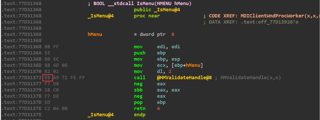 验证GetNextQueueWindow返回的tagWND偏移0x78处保存的spmenu成员是否为0,如果不为0,将对spmenu偏移0x14处指向的地址进行或运算: