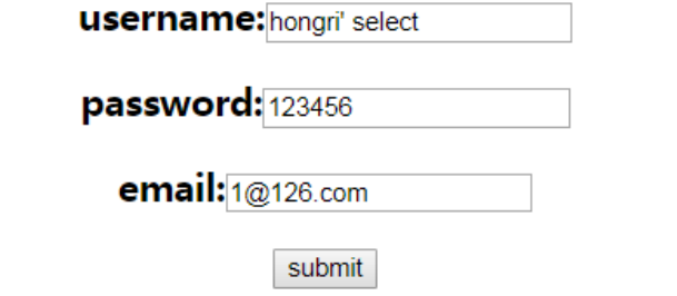 插入数据库语句。然后在利用查找语句进行查找邮箱语句。