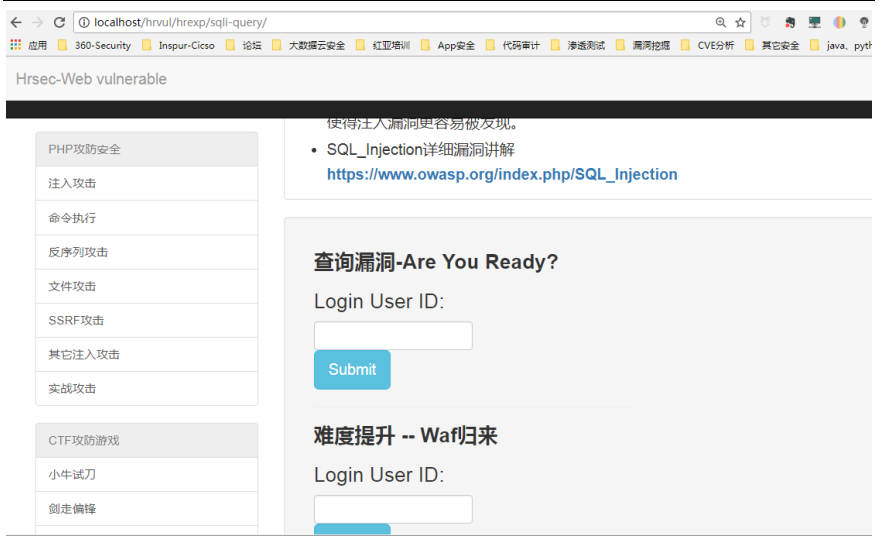 为了讲解这些常用函数,临时写了一个 HRvul 小靶场进行漏洞练习。参考了部分安全靶场。