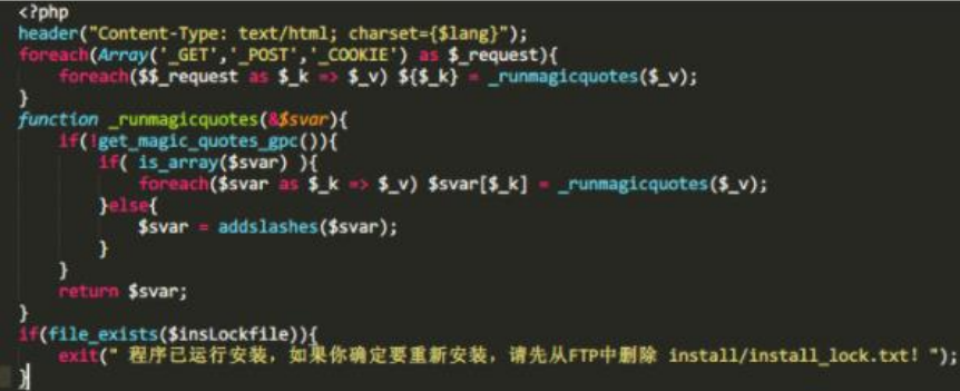 他会把你从 GET、POST、COOKIE 中的变量注册为全局变量,因此我们直接通过GET 参数提交 $insLockfile 变量即可绕过。