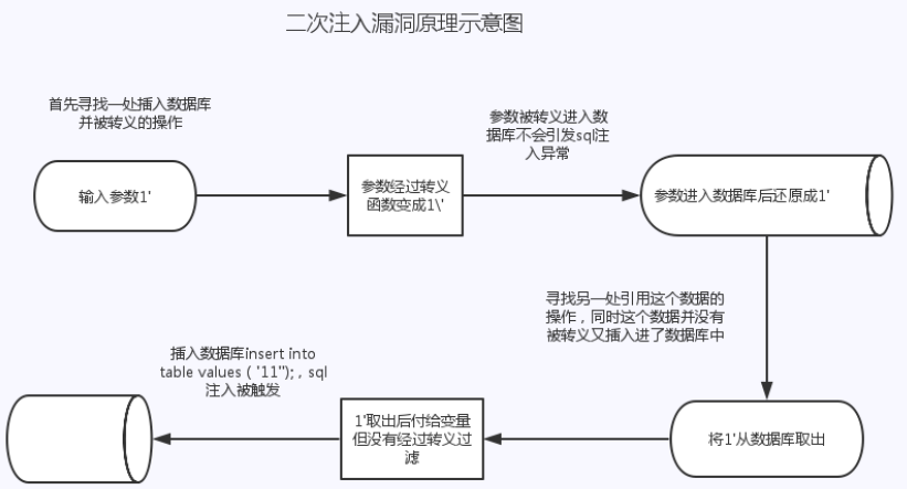 在浏览文章的时候,发现一个图片比较好,就给大家放过来更容易理解二次注入。