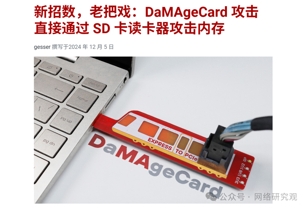 新招数,老把戏:DaMAgeCard 攻击直接通过 SD 卡读卡器攻击内存