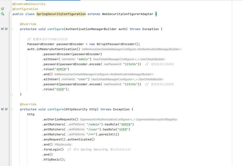 那有师傅就要问了,明明shiro之类的漏洞更多,他们凭什么叫安全框架?其实原因就是SpringSecurity和Apache shiro一样都会使用很少的配置代码,就能对系统的全部路径、全部接口进行访问权限和认证的配置。如果不使用安全框架,你自己去写安全认证代码,可能代码又臭又长,并且可能漏洞百出。