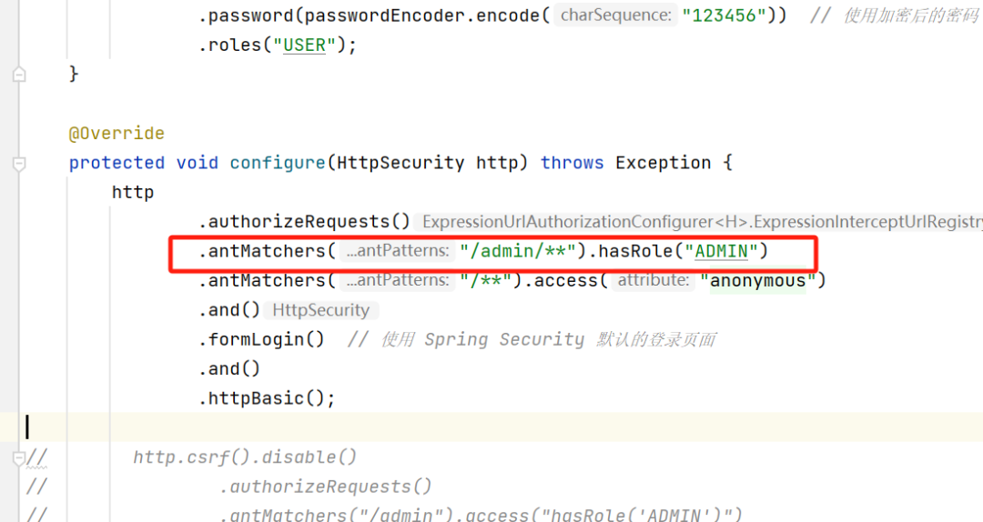 这里改写成使用antMatchers进行权限的判定,当然,下面的配置也是正确写法。