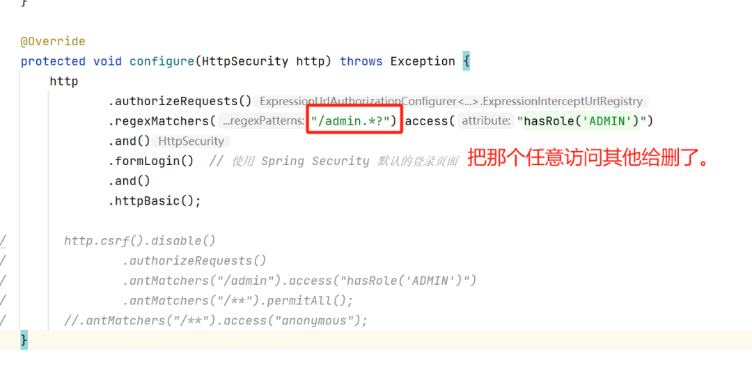 .antMatchers()进行鉴权,如果写的配置存在错误,就会存在多种绕过方式,比如后缀添加斜杠等方式。
