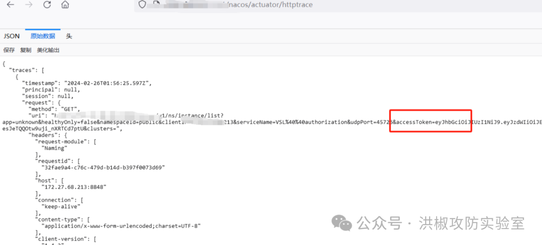 这时候就想到了,默认配置下的nacos,除了存在认证绕过漏洞,还存在spring的Actuator未授权漏洞,如果存在env接口,大概率是能够从heapdump里得到nacos的jwt密钥的,然后进行构造正确的token。还有一个接口就是/httptrace