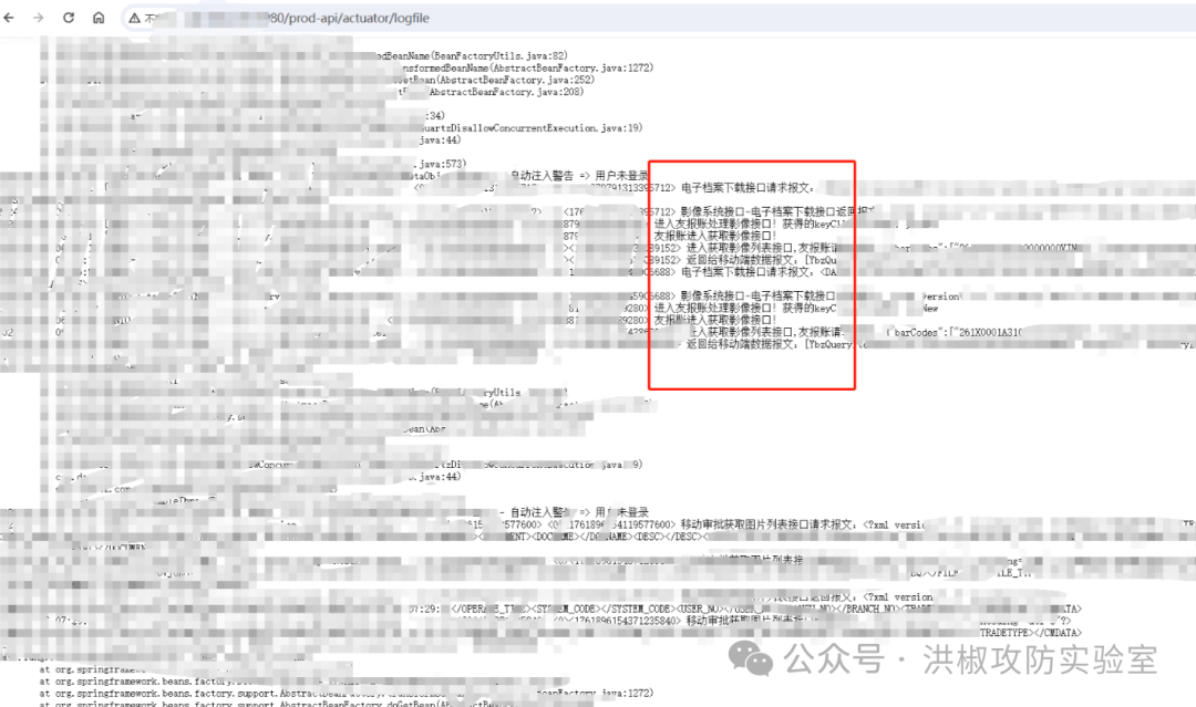 Actuator未授权中的/logfile也是比较容易被忽略的接口,它记录了所有请求的日志。