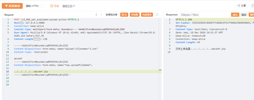 我们可以尝试使用[0].top.UploadFilename来对文件名做修改,但从返回结果来看并没有成功。