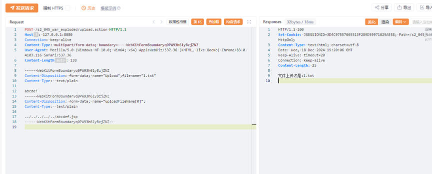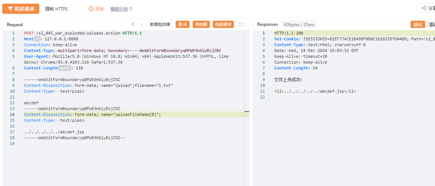 那么使用poc测试一遍,很明显uploadFileName[0]这种方法绕过是成功的。