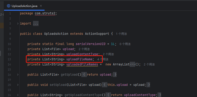 同样的Payload放在单文件上传的场景自然而然就失效了,uploadFileName在这里只是一个String类型的变量。