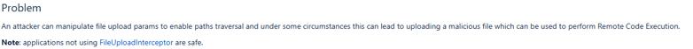 :根据官方文档,使用org.apache.struts2.interceptor.ActionFileUploadInterceptor作为文件上传的处理拦截器,这个新的拦截器可能包含了针对此类漏洞的防御机制。 -