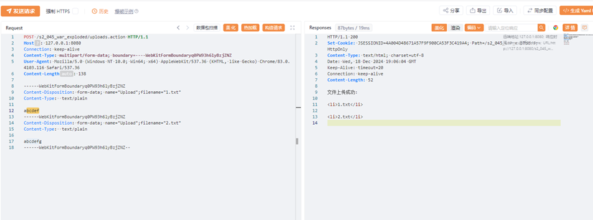 为方便调试,首先构造一个上传多文件的数据包,进行发包测试。