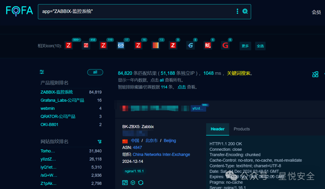 Fofa指纹:app=”ZABBIX-监控系统”