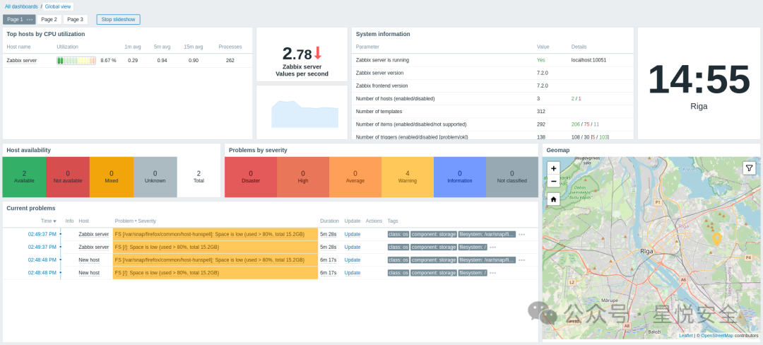Zabbix 是一款可监控网络的众多参数以及服务器、虚拟机、应用程序、服务、数据库、网站、云等的健康状况和完整性。Zabbix 使用灵活的通知机制,允许用户为几乎任何事件配置基于电子邮件的警报。这允许对服务器问题做出快速反应。Zabbix 基于存储的数据提供报告和数据可视化功能.