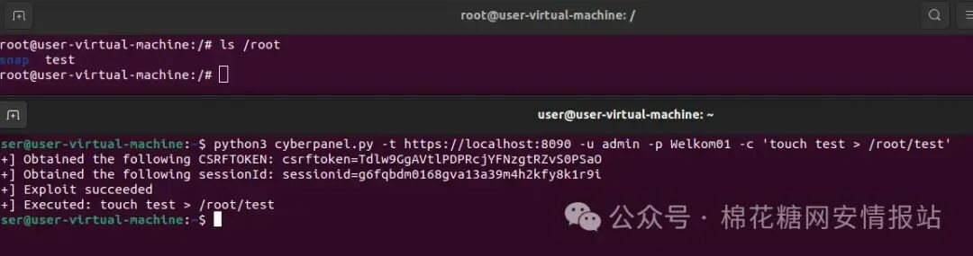 安全研究人员 Thanatos 在 CyberPanel 2.3.7 版本上测试了该漏洞,证明它能够在系统的任何地方执行命令,以 root 权限写入文件。如果可以访问 CyberPanel 的安装文件夹,攻击者就可以进一步提取敏感数据,从而加剧漏洞的严重性。