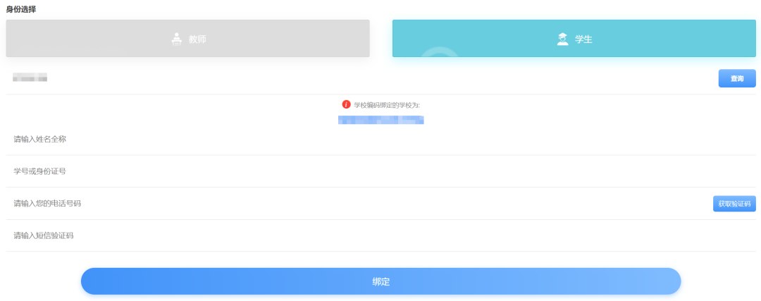 这里需要输入姓名和学号,直接搜索引擎搜索即可得到,这就不用多说了,但是这里的手机号可以任意输入,只要用户没有绑定手机号